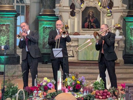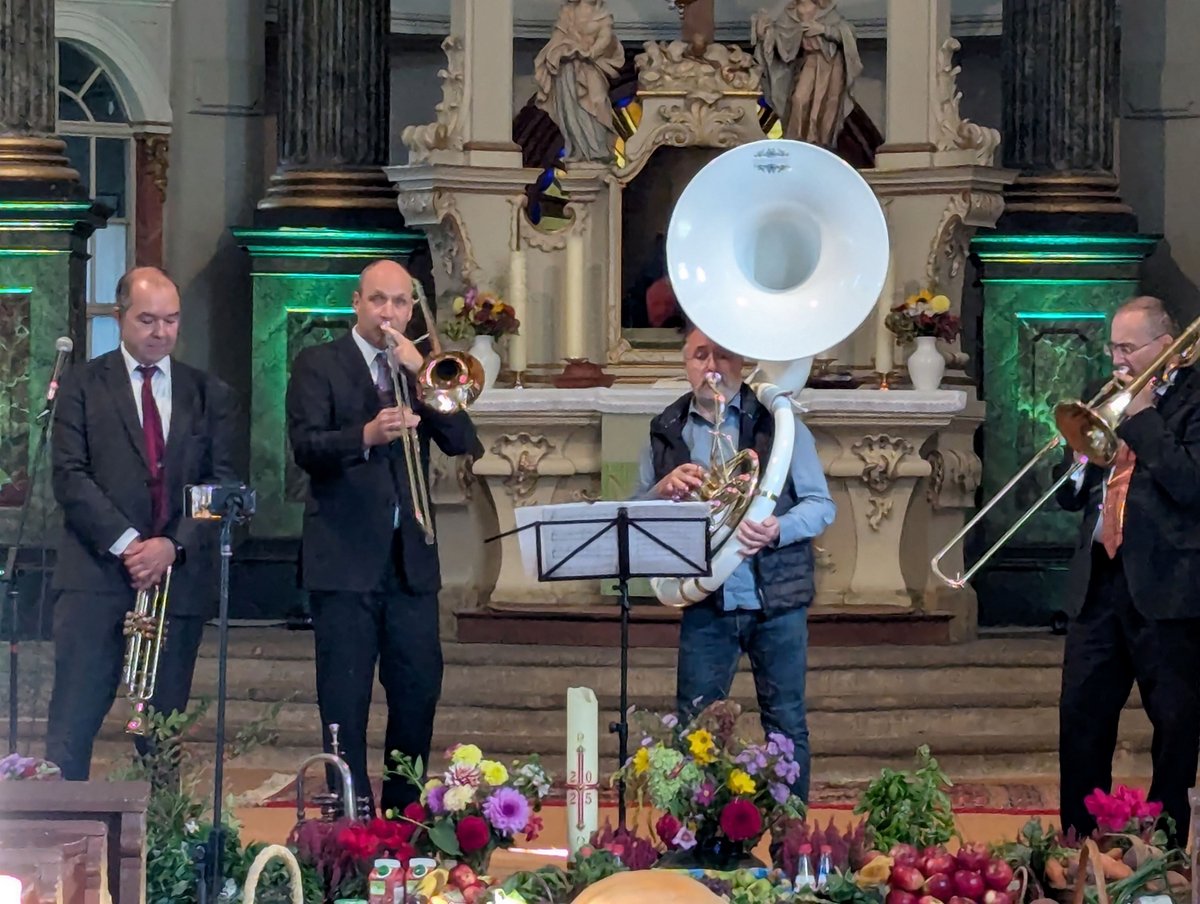 Den krönenden Abschluss des Tages bildete das herrliche Konzert der „Spezial Little Big Band“. Die Musiker begeisterten das Publikum mit einem abwechslungsreichen Repertoire, das sich über verschiedene Stilrichtungen erstreckte. Es erklangen sowohl zeitlose Stücke von Gershwin und Choräle von Paul Gerhardt als auch faszinierende Eigenkompositionen. Ein besonderes Highlight war der Einsatz des mächtigen Sousaphons, das teilweise vom versierten Gastmusiker Steffen Peschel gespielt wurde und den Darbietungen einen unverwechselbaren, tiefen Klang verlieh. Das Publikum feierte die musikalische Vielfalt und den beeindruckenden Abschluss dieses gelungenen Erntedankfestes.